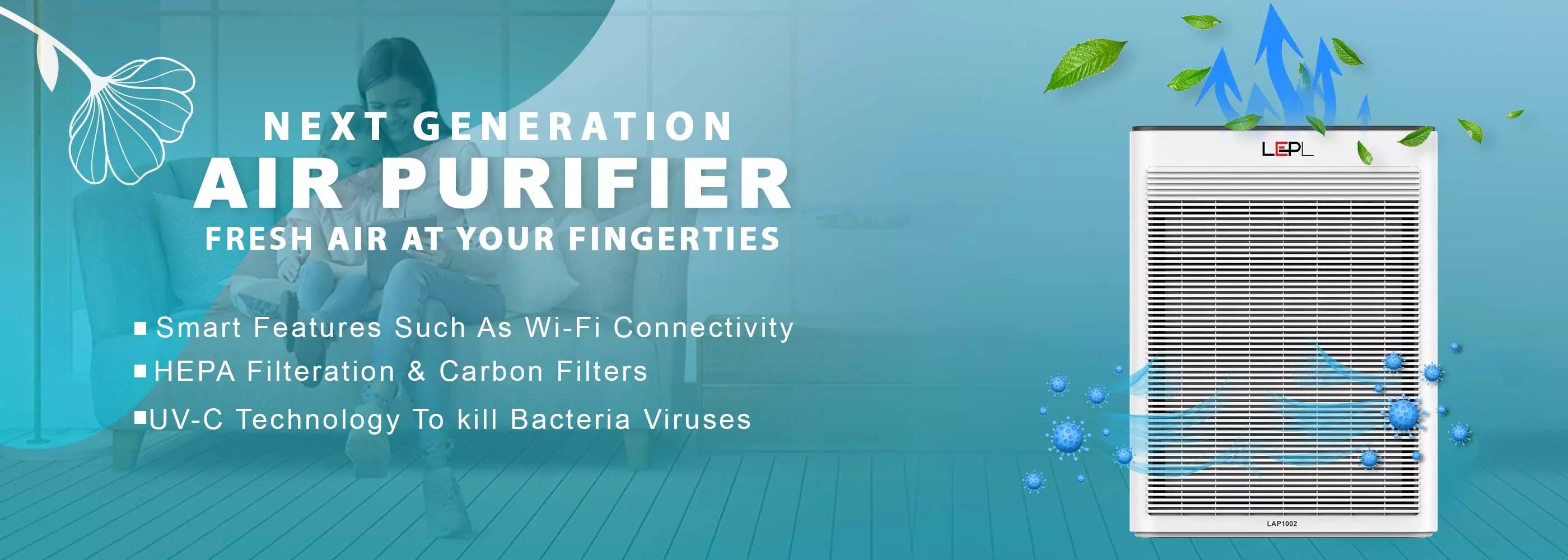 Introducing our Next Generation Air Purifier LEPL LAP1002, a powerful device designed to revolutionize the quality of the air you breathe & to enhance your indoor environment by removing airborne particulates, gaseous pollutants, microorganisms, and other pollutants. This advanced air purifiers feature additional technologies such as ultraviolet (UV) light sterilization or ionization to neutralize bacteria, viruses, and other harmful microorganisms. These purifiers help in creating a cleaner and healthier environment by reducing the presence of airborne pollutants that can contribute to respiratory issues and allergies.