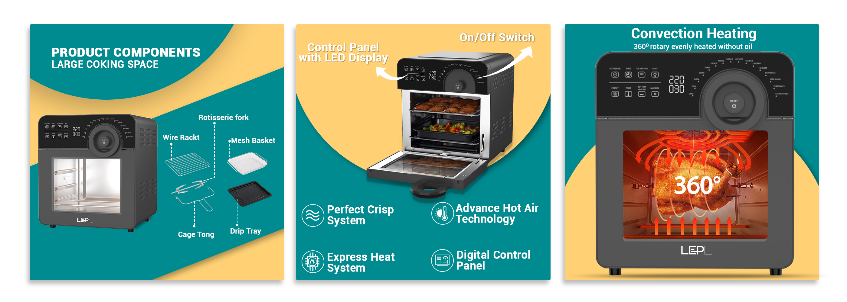 LEPL LAF526 Crispify Air Fryer Oven 14 L,1700 W, 16 Preset Programs| Roast, Dehydrate, Bake,Fry, Rotisserie, Grill, Convection | Touch, Digital display, Rapid Air Tech, Temp &Timer Control,1 Year Warranty
