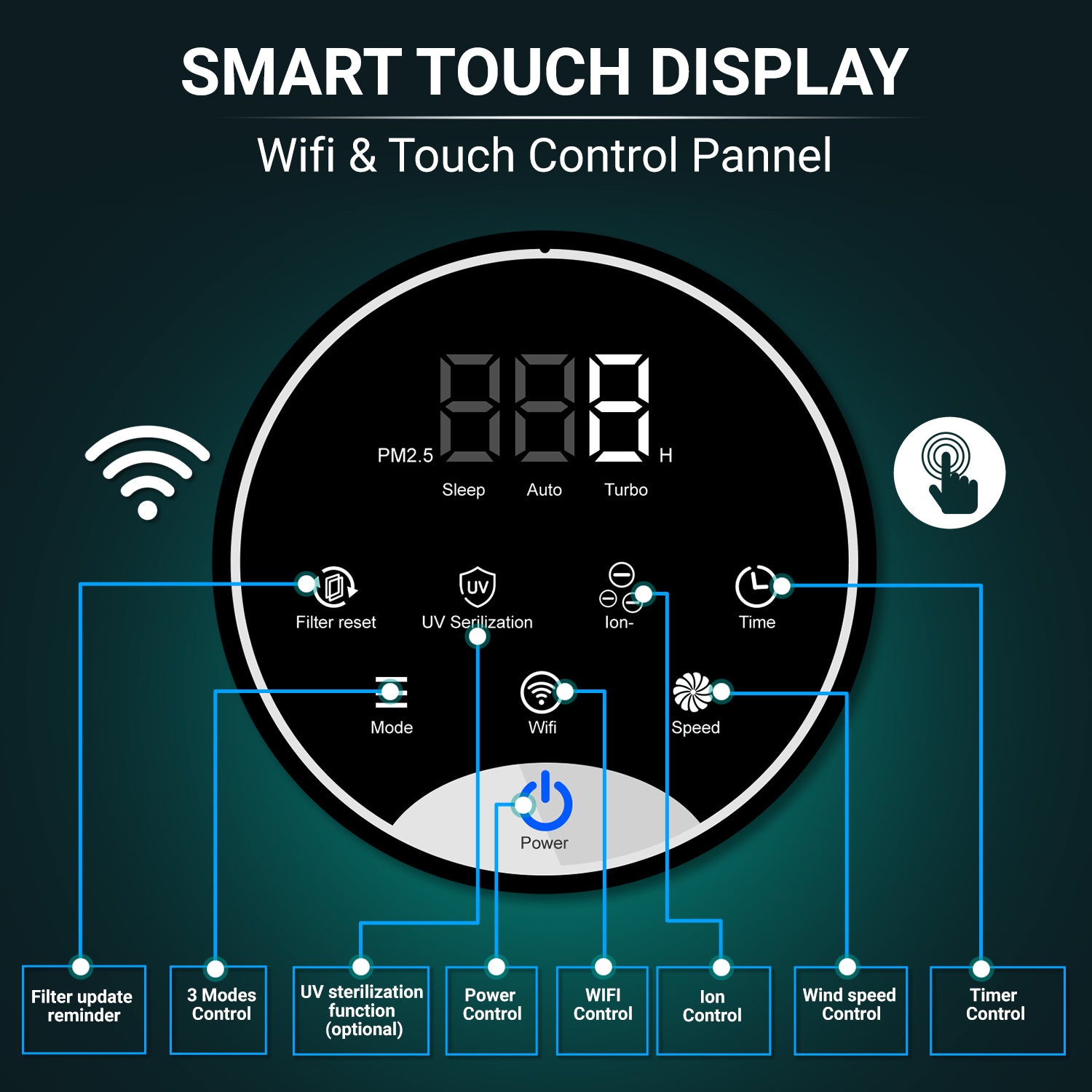 - Wi-fi connectivity - Smart features such as Wi-Fi connectivity with smartphone apps allows you for convenient control and monitoring of the air purifier from your Mobile Phone.