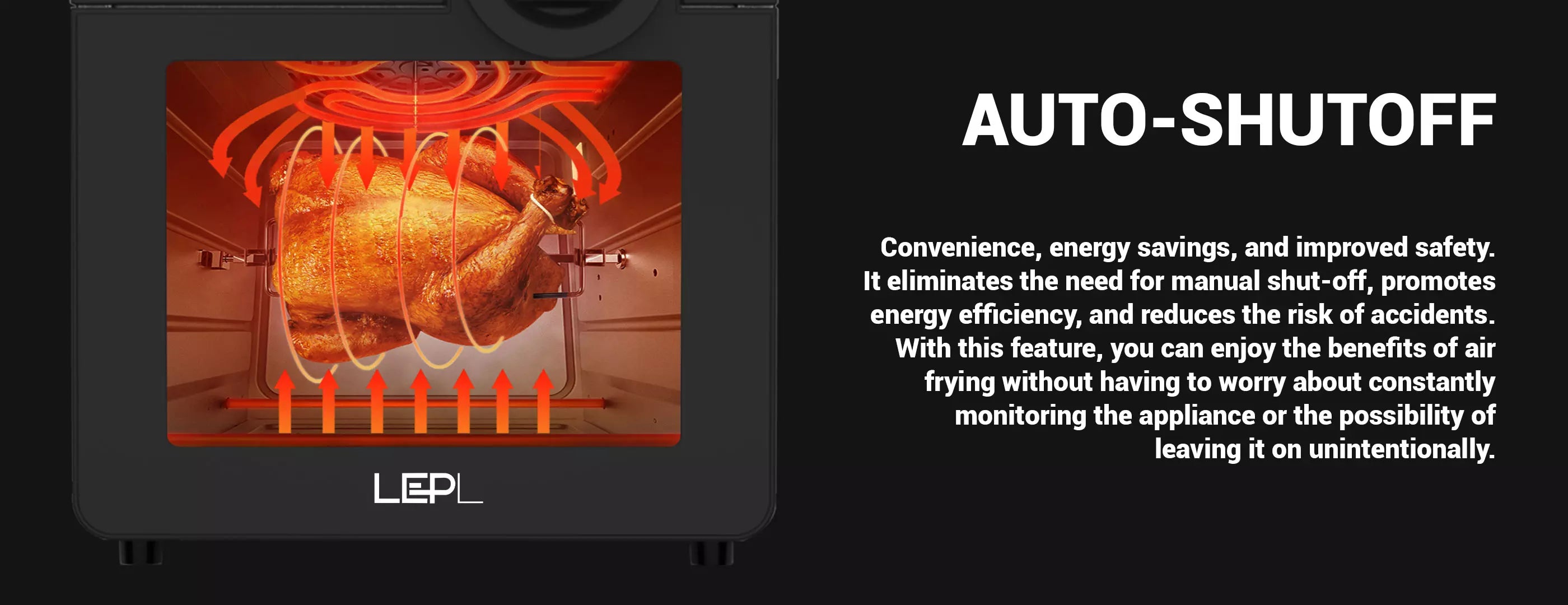 - Auto-shutoff: A safety feature that automatically turns off in 60 seconds when the idle air fryer is after a certain period of inactivity to prevent overheating or accidents