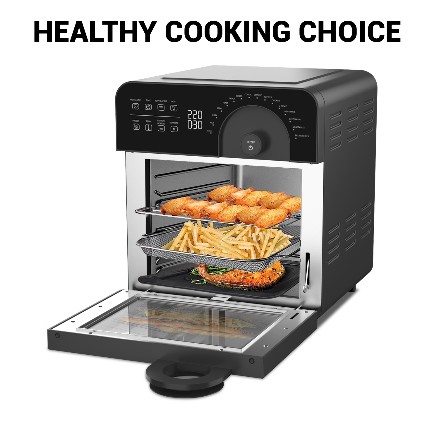 - HEALTHY COOKING CHOICE: This air fryer toaster oven adopts the new cooking technology using 360° hot air circulation. With only a little to no oil, you can get a crispy and crunchy texture just like the old traditional way of deep frying. You will be able to enjoy your favorite fried meals and snacks without worrying about the added calories and fats.